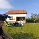 С террасы открывается вид на сад. В ванной комнате также есть отдельный туалет и душ. Для удобства гостей предусмотрены фен, полотенца и тапочки.